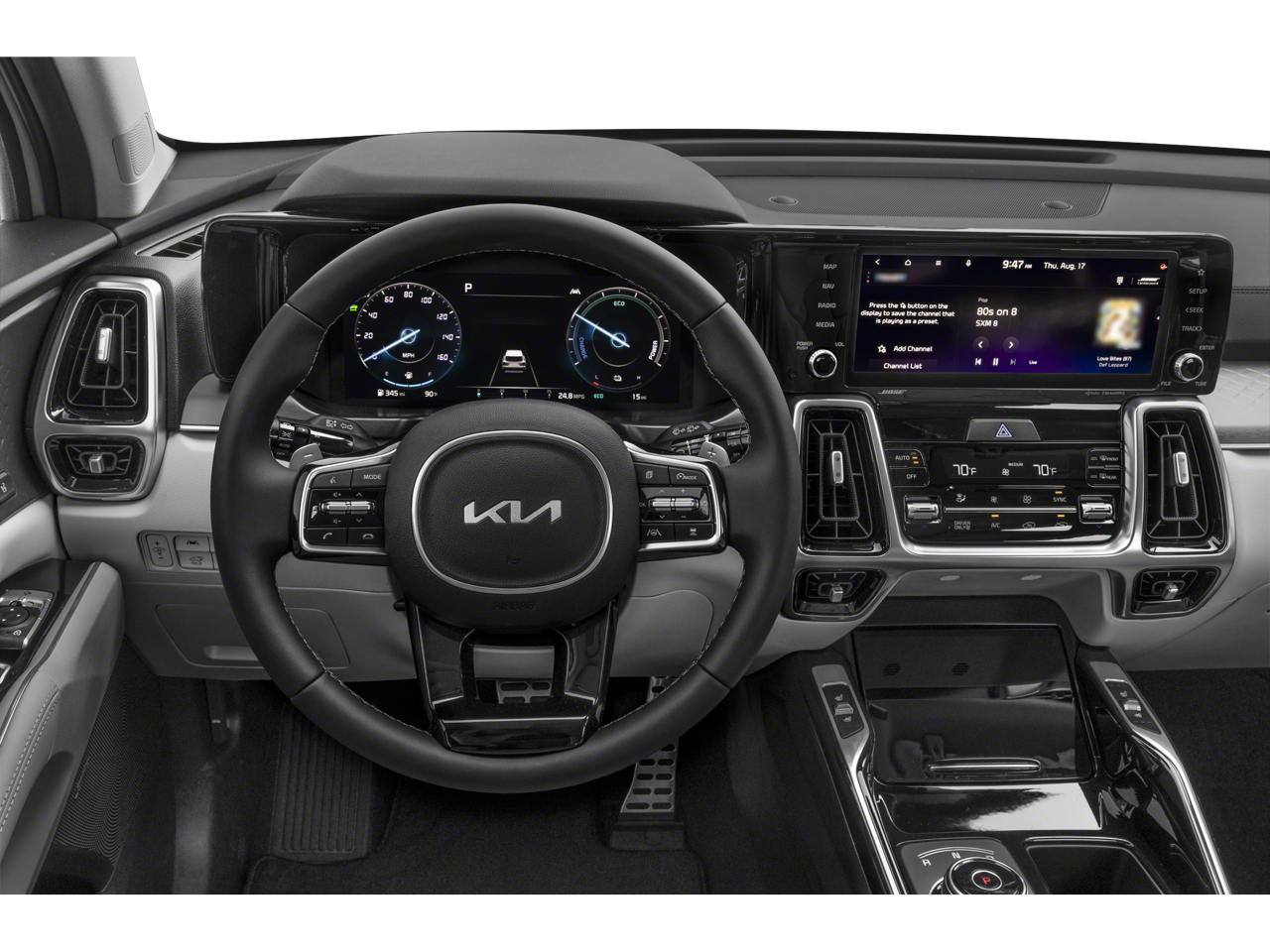 Certified. Platinum Graphite 2024 Kia Sorento Plug-In Hybrid SX Prestige AWD 6-Speed Automatic 1.6L I4 DGI Hybrid Turbocharged DOHC 16V LEV3-ULEV70 1.6L I4 DGI Hybrid Turbocharged DOHC 16V LEV3-ULEV70, 12 Speakers, 3rd row seats: split-bench, Apple CarPlay & Android Auto, Auto-dimming Rear-View mirror, Automatic temperature control, Electronic Stability Control, Exterior Parking Camera Rear, Front dual zone A/C, Front fog lights, Fully automatic headlights, Garage door transmitter: HomeLink, Genuine Perforated Leather Seat Trim, Heated & Ventilated Front Bucket Seats, Heated door mirrors, Heated rear seats, Heated steering wheel, Memory seat, Navigation System, Outside temperature display, Power driver seat, Power Liftgate, Power moonroof, Power passenger seat, Radio: AM/FM/SiriusXM Audio System, Rain sensing wipers, Smart Key w/ Push Button and Remote Start, Telescoping steering wheel, Traction control, Turn signal indicator mirrors, Wheels: 19 Machine-Finished Alloy.